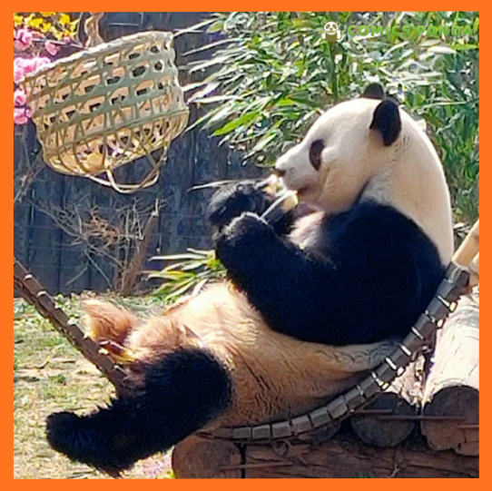 A panda looks like he is relaxing on a swing set while living in a zoo. This looks so eye-catching and surprising. These structures enable pandas to relax, assess various heights, and view their environment. Platforms allow pandas to sit comfortably, nap, and relax. Perhaps some zoos install this kind of structure that pandas can relax on made of strong materials. Although pandas do not have swings that are necessary, they used to lay on it and relax instead of playing with it.