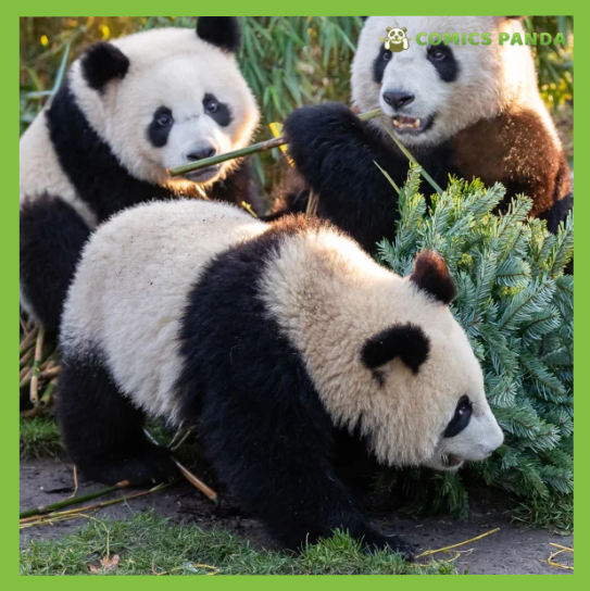 #4. Three Panda Friends Exploring The Things In A Forest